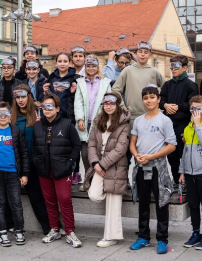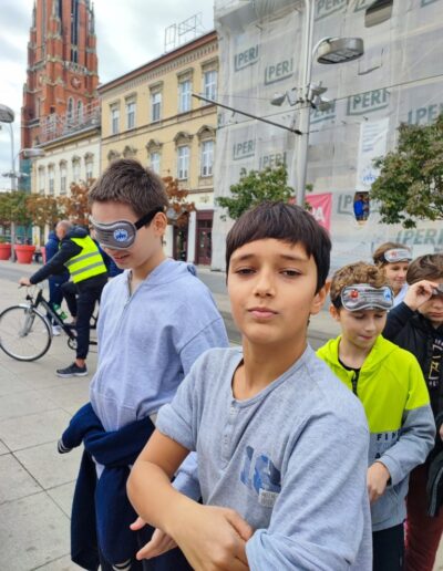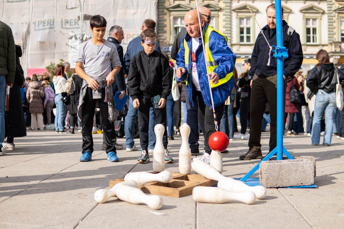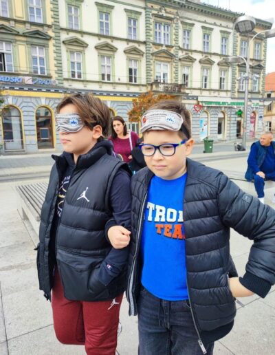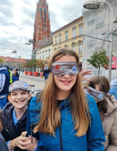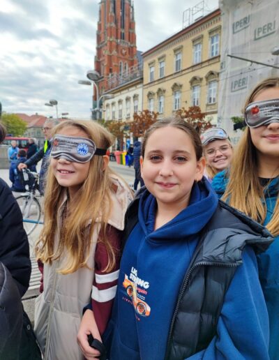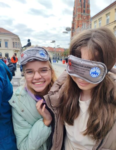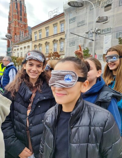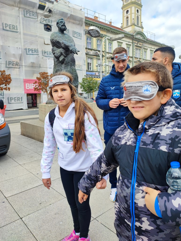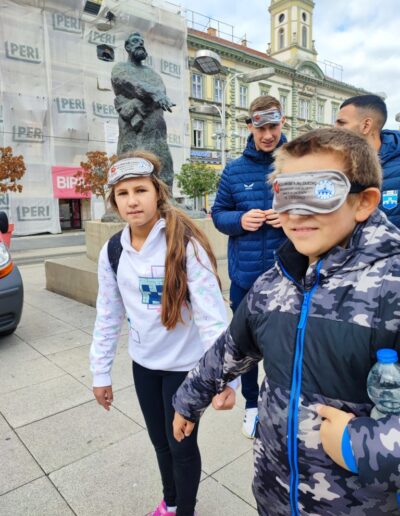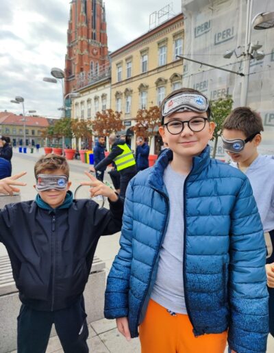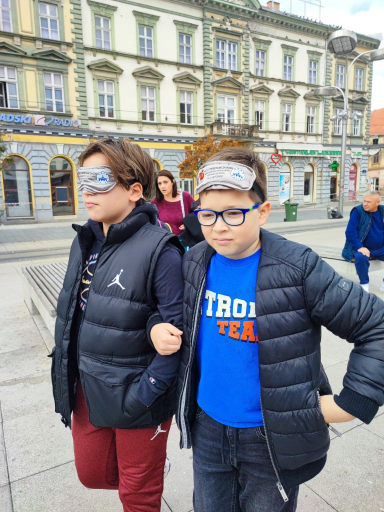 Učenici su se, zajedno s ostalim uzvanicima, pridružili šetnji na relaciji između Trga Ante Starčevića i Trga Slobode. Šetali su u parovima – jedna je osoba vodila, dok je druga imala povez na očima. Svatko je imao priliku iskušati se u zahtjevnoj ulozi onoga koji vodi i onoga kojemu je potrebna tuđa pomoć.