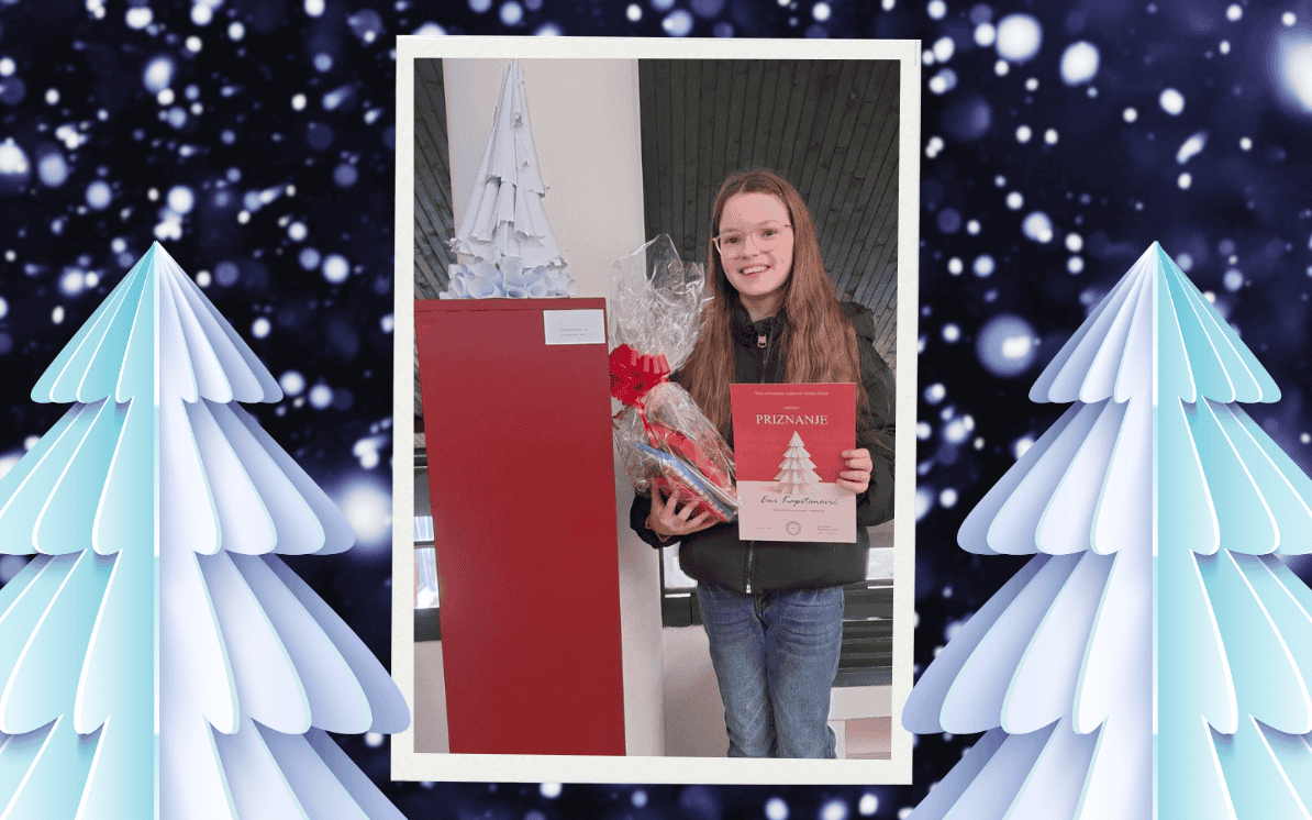 Na izložbi učeničkih radova “Papirnati bor”, postavljenoj u Školi primijenjene umjetnosti i dizajna u Osijeku početkom prosinca, naša učenica Ena Kapitanović iz 6.a razreda osvojila je nagradu za najmaštovitiji i najkreativniji rad.