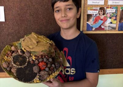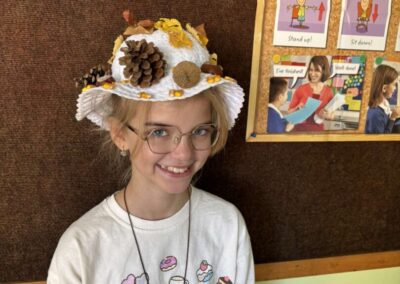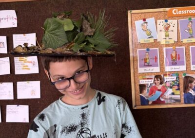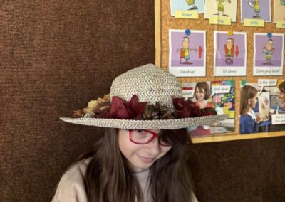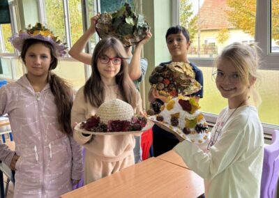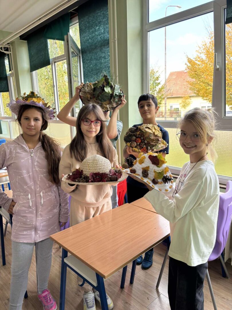 U sklopu nastave hrvatskoga jezika učenici 5.b razreda izrazili su svoju kreativnost u aktivnosti Priča jesenskog šešira. Svaki je učenik izradio svoj šešir ukrašen jesenskim plodovima – lišćem, žirevima, kestenima, kukuruzom i drugim darovima prirode. Nakon što su šeširi poprimili svoj jesenski sjaj, učenici su osmislili priče u kojima su njihovi šeširi postali glavni likovi.