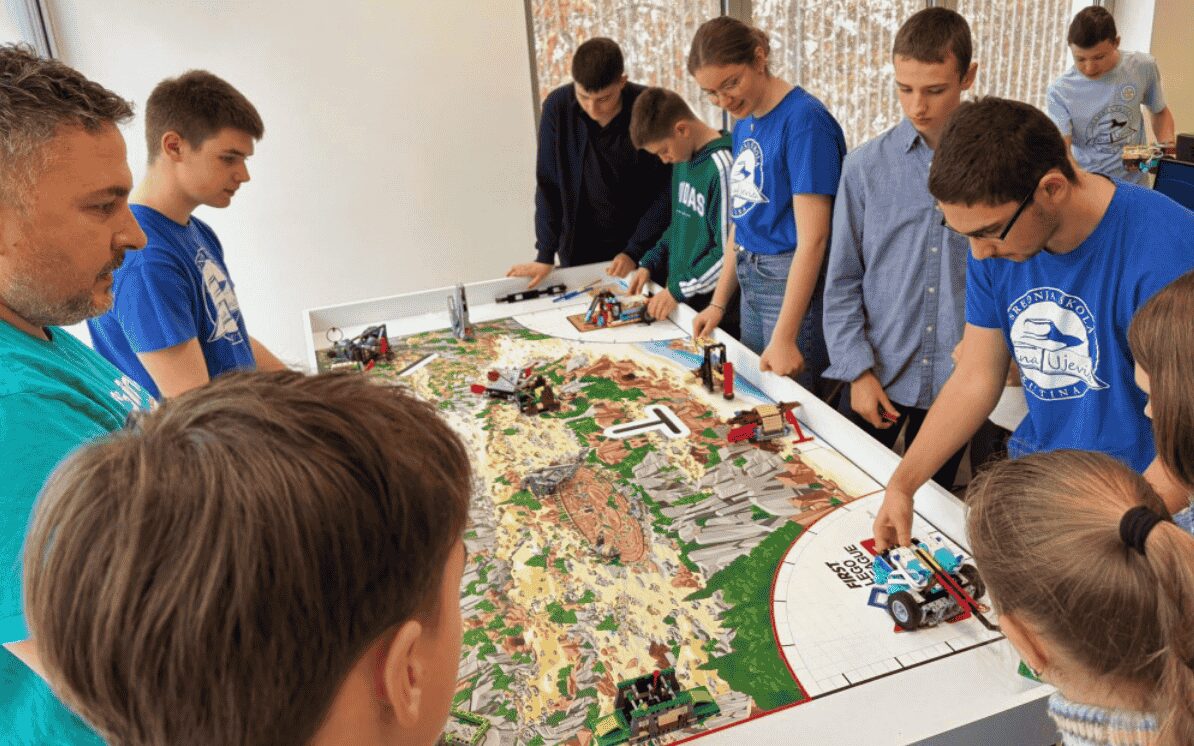 Danas je dio naših robotičara posjetio Elektrotehničku i prometnu školu u Osijeku gdje se okupilo nekoliko robotičkih timova s područja Osijeka, a pridružili su nam se i gosti iz Kutine – učenici Srednje škole Tina Ujevića iz Kutine, koji će ujedno biti i domaćini polufinalnog natjecanja First Lego League 14. veljače u Kutini.