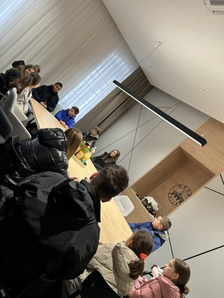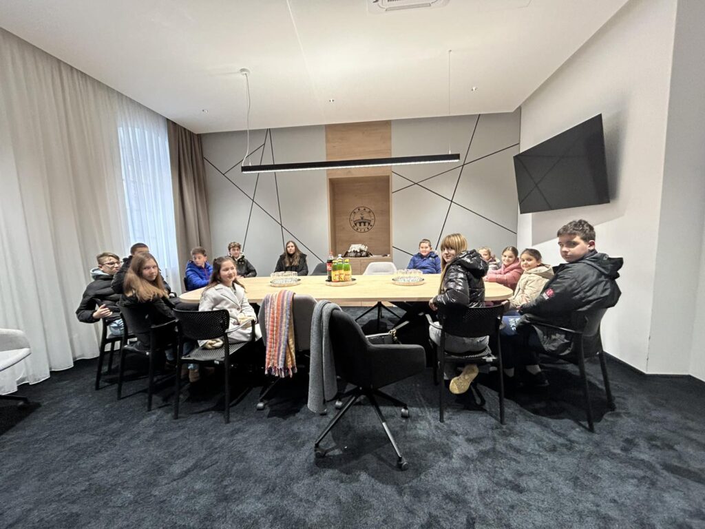 Vijeće učenika naše škole, u pratnji pedagoginje Ive Dragić i knjižničarke Betine Boban, posjetilo je prostor Gradske uprave u Kuhačevoj 9, gdje su ih ugostili predsjednik Gradskog vijeća Tihomir Florijančić i pročelnik Upravnog odjela za društvene djelatnosti Josip Jukić.