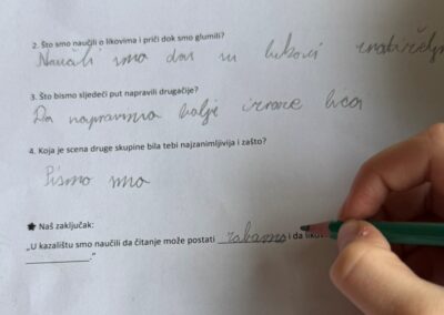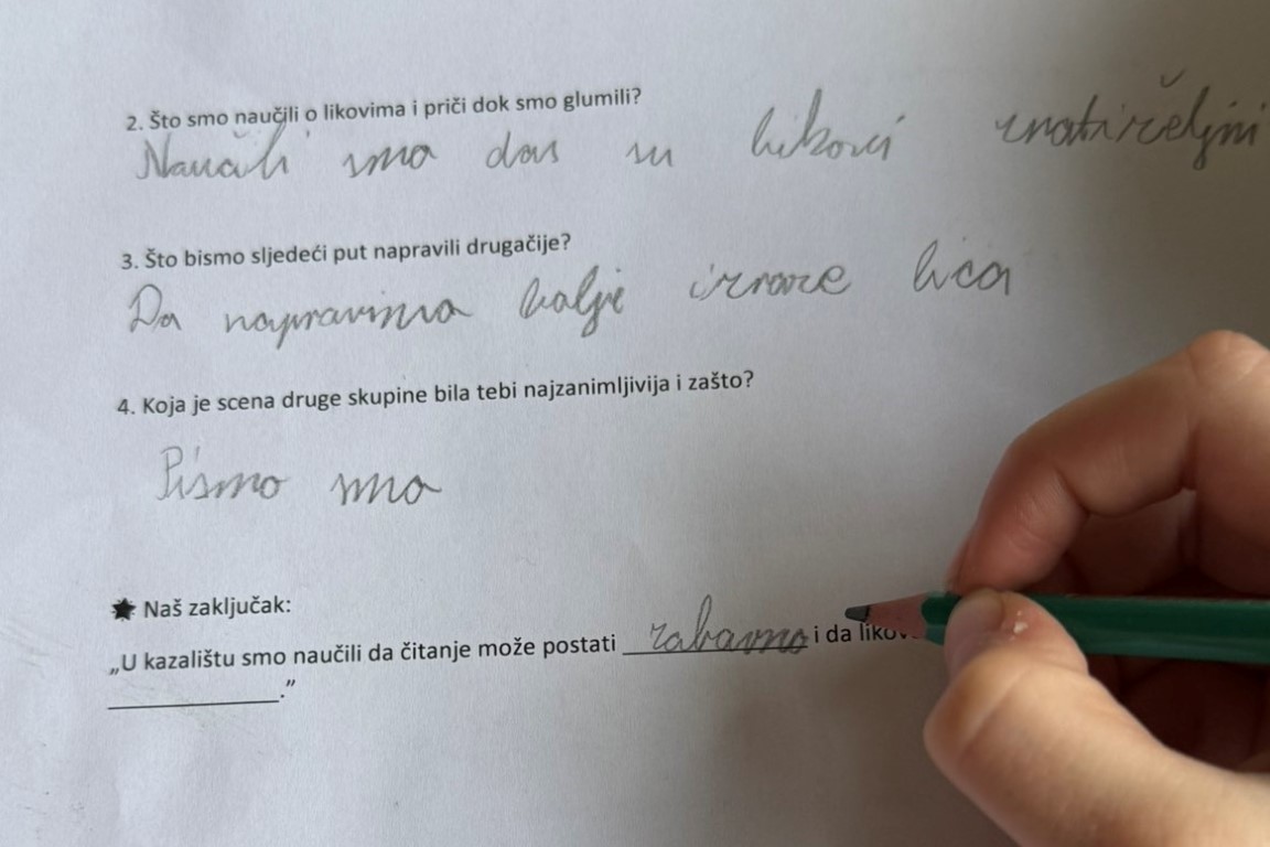Radionica je učenicima omogućila doživjeti književno djelo na sasvim novi način – ne samo kao tekst koji se čita, nego i kao priču koja se može oživjeti. Postali su pravi mali glumci koji su dokazali kako čitanje može biti i kreativno i zabavno iskustvo.